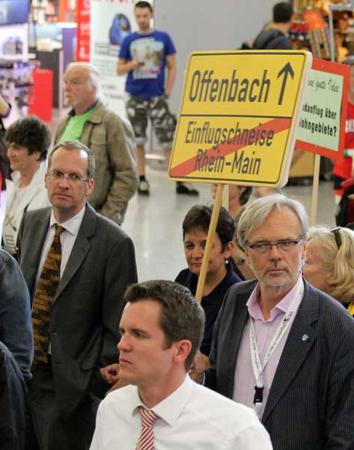 100te Montagsdemo am 19. Mai 2014 im Terminal 1 Oberbürgermeister Horst Schneider (r.)