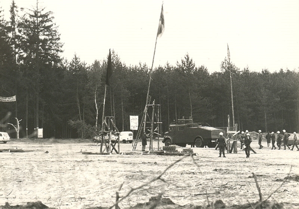 Einsatz im Rodungsgelände beim Bau der Startbahn 18