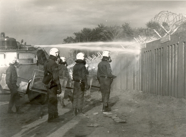 Einsatz im Rodungsgelände beim Bau der Startbahn 18
