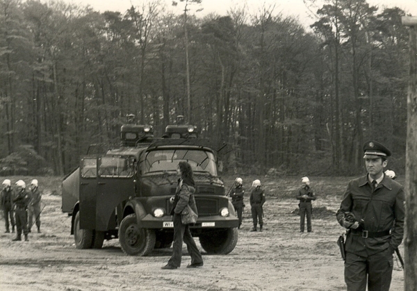 Einsatz im Rodungsgelände beim Bau der Startbahn 18