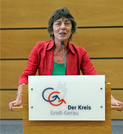 Silvia Weber (Fraktion BÜNDNIS 90/DIE GRÜNEN), passend in rotgrün gekleidet,