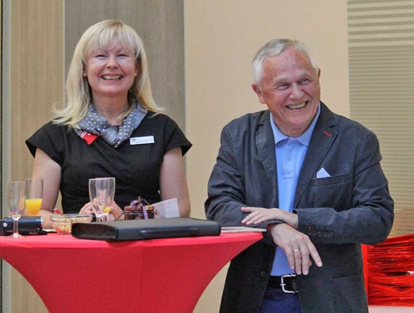 Sabine Funk, Vortsandsmitglied der Kreissparkasse mit W. C. Schmitt.
