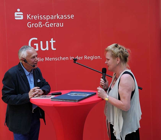 Beare Koslowski, Künstlerin aus Nauheim, überreichte ein von Künstlern aus dem Kreis Groß-Grau gestaltenes Buch mit Widmungen.
