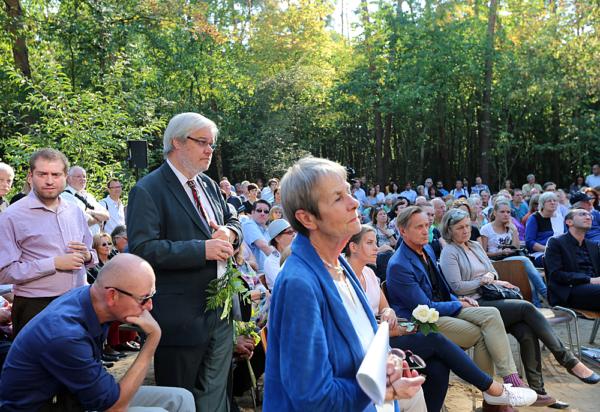 Heinz-Peter Becker (stehend mit Blumen) und Moderatorin Ulrike Holler