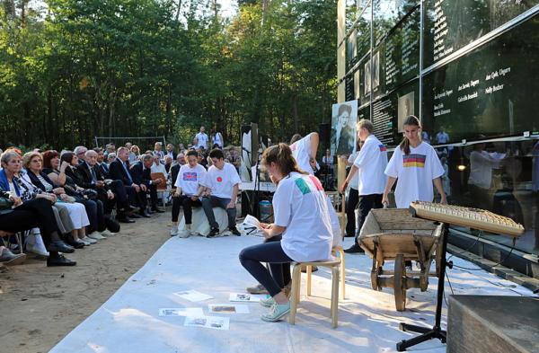 Oberstufenschüler der Ricara-Huch-Schule stellen Bilder zur Geschichte des Kellers unter der Küchenbaracke sowie seiner Freilegung.