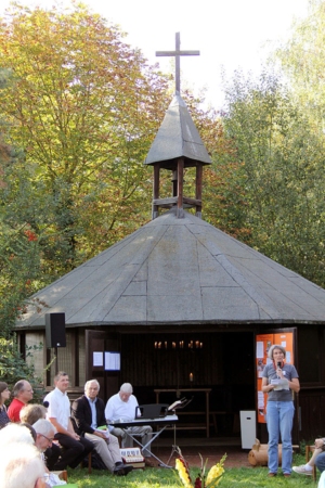 Anne Moses (mit Mikrofon) vom Förderverein Hüttenkirche e.V.