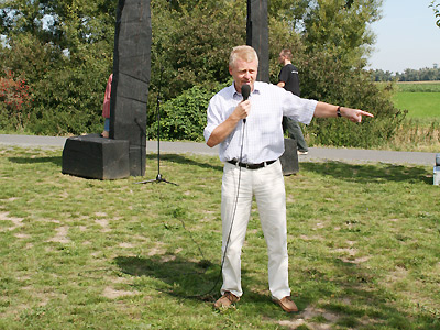 Jürgen Volkmann, Stadtmuseum Groß-Gerau, erklärt den Besuchern anschaulich die Enstehung des Rieds