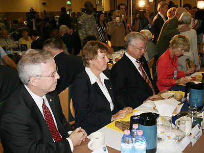 v.l.n.r.: Herr Clements, Verbindungsoffizier der US Army in Wiesbaden, Frau Anke Koch, der Hessische Ministerpräsident Roland Koch, Mrs. Timken