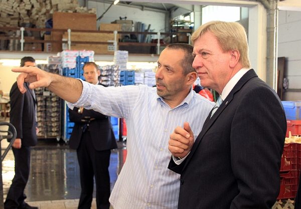 Gastgeber Rolf Merlau vom Spargelhof Merlau in Darmstadt-Arheilgen erläutert die Verarbeitung des Spargels