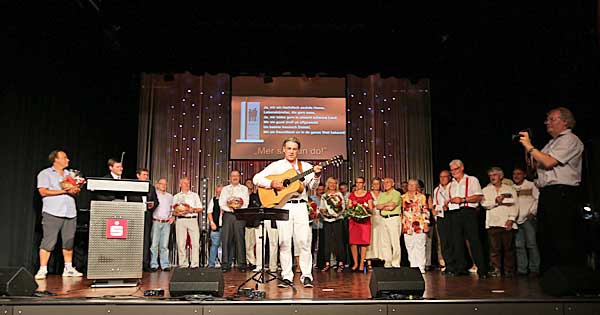 Vorstand der Kreissparkasse, Organisatoren, Juroren und Teilnehmer am MundART-Wettbewerb „Mer sin vun do!“