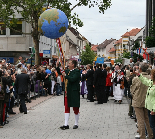 Peter Dinkel alias Kurier seiner Königlichen Hoheit mit Weltkugel