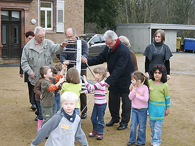 Doch zuerst wird der Unterbau aus Metall von den Kindern, unterstützt von