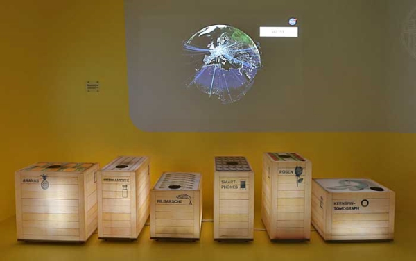 Themenraum "Passagier und Fracht" Transportwege von Produkten des Alltags - Rosen, Fisch, Smartphones, Medikamente.... © Hans-Jürgen Pilgerstorfer www.gg-online.de