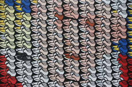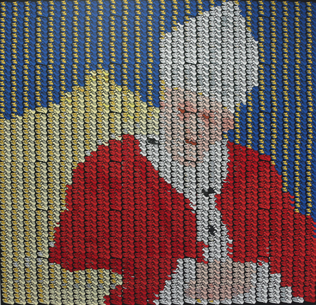 sind aus unzähligen winzigen Papstschuhen zusammengestellt. |