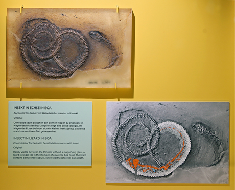 Eonconstrictor fischeri mit Geiseltallielus maarius mit Insekt