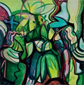 Seit der „Initialzündung“ durch eine Exkursion während des Kunststudiums in der Toskana spielen Pflanzenformen eine ganz wichtige Rolle in den oft dschungelartigen Kompositionen in Zeichnungen und Gemälden der Künstlerin. Die kürzlich wieder aufgegriffene Ölmalerei (seit Ende der 80er Jahre nur Acryl) und die formal wieder stärkeren Bezüge zwischen Malerei und Zeichnung eröffnen neue Ausdrucksmöglichkeiten und neue künstlerische Herausforderungen.