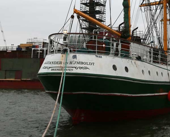 "Alexander von Humboldt" Werft in Bremerhaven im Dezember 2014 Nach dem Umbau soll die "Alex" nach Bremen (Schlachte) als Hotelschiff verholt werden.