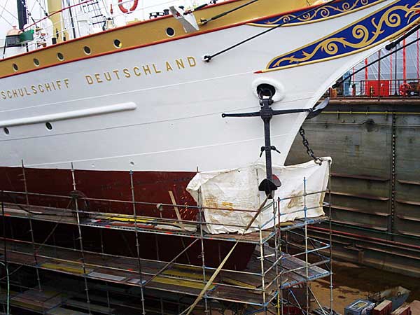 Die "Deutschland" im Trockendock der Bredo (Bremerhavener Dock GmbH) in Bremerhaven.