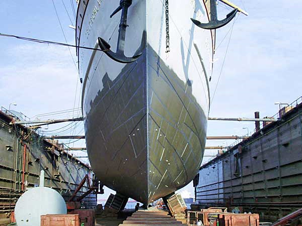 Die "Deutschland" im Trockendock der Bredo (Bremerhavener Dock GmbH) in Bremerhaven.