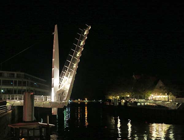 Geöffnetete Fußgängerbrücke am Vegesacker Haven