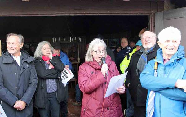 Wilma Frühwacht-Treber, Vorsitzende des Förderkreises (mit Mikrofon) und Museumsleiterin Cornelia Rühlig (l.)