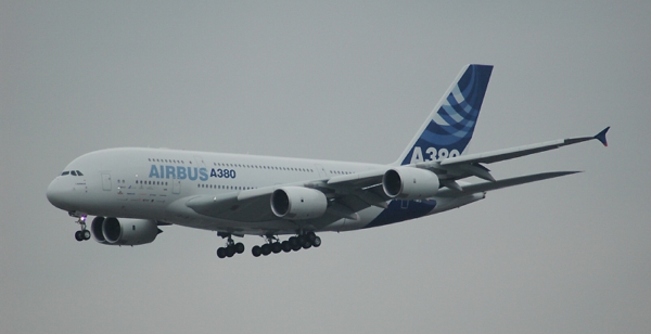März 2007: Airbus A380, Kennzeichen: F-WWJP, zu Langstrecken-Erprobungsflügen unter realistischen Bedingungen in Frankfurt Zurück zum Bericht