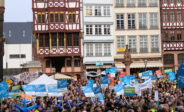 Vor der malerischen Kulisse des Römerberges in Frankfurt am Main Flughafen