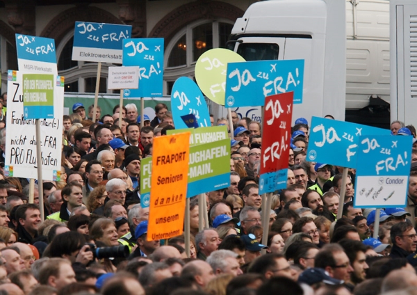 Gemeinsame Demonstration von Mitarbeitern der Fraoprt AG, der Deutschen Lufthansa und der Condor