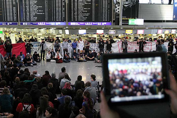 Blockupy-Aktivisten vor und im Terminal 1
