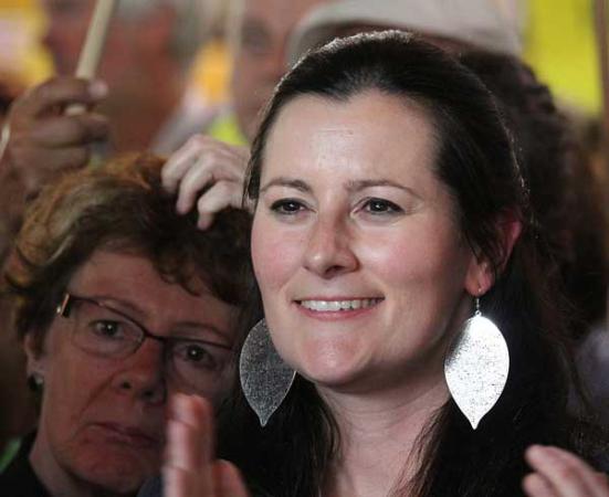 100te Montagsdemo am 19. Mai 2014 im Terminal 1 Stellvertretende Parteivorsitzende der LINKEN, Janine Wissler