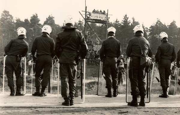 Einsatz im Rodungsgelände beim Bau der Startbahn 18