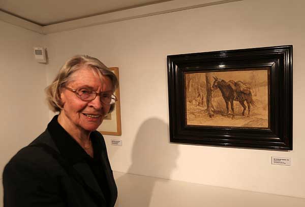 Frau Traute Kirchholtes vor einer wertvollen Rötelzeichnung Altheims, die sie vor einigen Wochen dem Stadtmuseum als Schenkung übereignet hatte.
