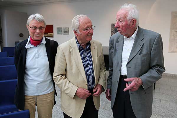 1. Juli 2014 Eröffung des Altheim-Kabinetts im Stadtmuseum Groß-Gerau Familie Höfle im Gespräch mit Georg Sturmowski (ehem. Vizepräsident des Hessischen Landtags)