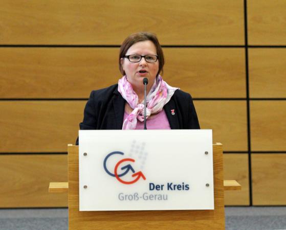 Christiane Böhm (Fraktion Die Linkspartei.Offene Liste) überreichte dem Landrat ein Buch von Karl Marx.