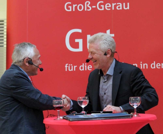 Gutgelaunt bei Rotwein und Wasser