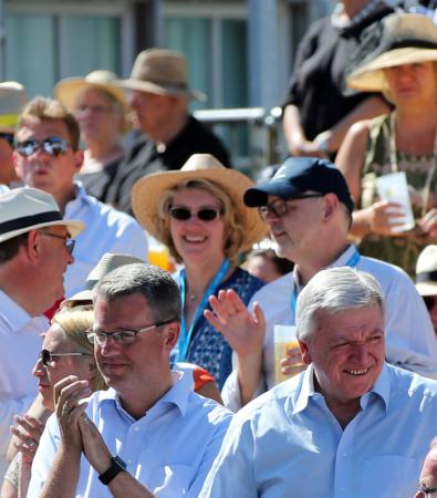 Hessentag 2017 in Rüsselsheim Festzug am 18. Juni 2017 Zwei die durchhielten, trotz großer Hitze: Ministerpräsident Volker Bouffier (v.r. und Oberbürgermeister Patrick Burghardt