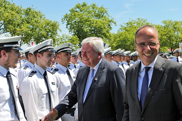 Ministerpräsident Volker Bouffier und Innenminister Peter Beuth im gepräch mit den Anwärtern.