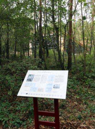 Oberstufenschüler der Ricara-Huch-Schule stellen Bilder zur Geschichte des Kellers unter der Küchenbaracke sowie seiner Freilegung.