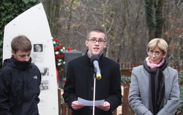 Max Pistor, David Neubecker und Anne Gnadt (v.l.) berichten über einen Besuch in Auschwitz