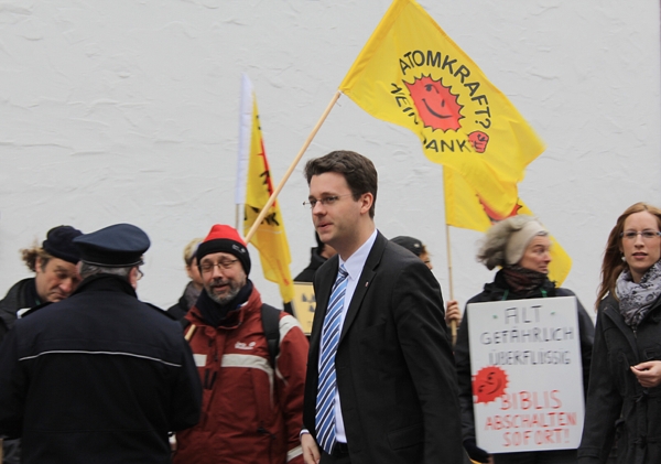 MdL Patrick Burghardt passiert die Demonstranten