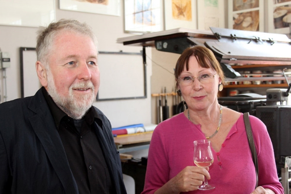Mario Derra mit Frau Dr. Eva Maria Hanebutt-Benz, ehemalige Direktorin des Gutenberg-Museums in Mainz