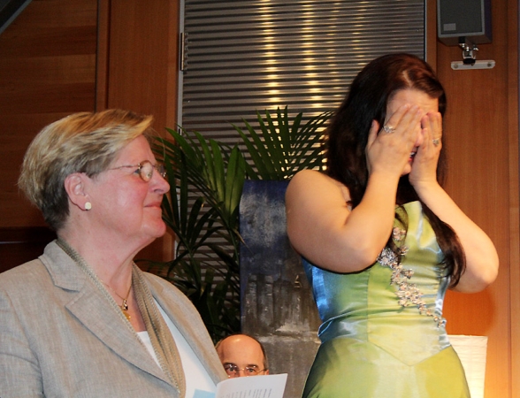 Ute Jochem unmittelbar nach der Bekanntgabe der Siegerin: eine fassungslose