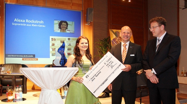 Nach der Preisverleihung durch den Schirmherrn der Veranstaltungsreihe, Stefan Sauer, Bürgermeister der Kreisstadt Groß-Gerau, folgte die Scheckübergabe durch den Vorstandsvorsitzenden der Volksbank Groß-Gerau, Hans-Peter Born.