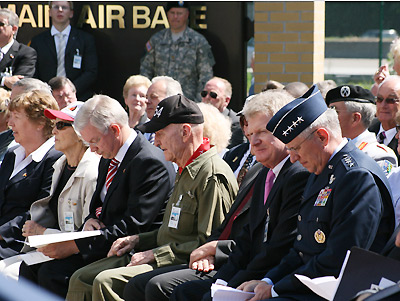 Ehrengäste und Offizielle (v.l.n.r.): Frau Anke Koch, Mrs. Halvorsen, roland Koch, hessischer Ministerpräsident, Mr. Halvorsen, Dr. Wilhelm Bender, Vorstandvositzender Fraport AG, Gen. Roger A. Brady, Commander, U.S. Air Forces in Europe