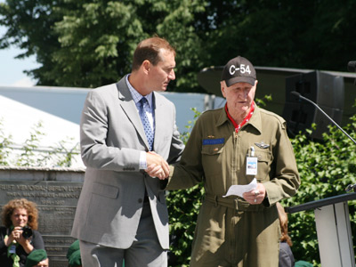 der Ehrengast Gale S. Halverson (r.) zusammen mit dem Moderator vom "Soldatensender" AFN