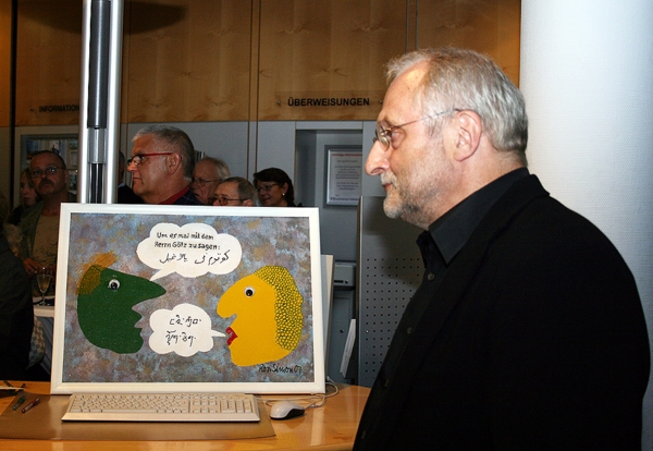 Volksbank Groß-Gerau, Harald Dzubilla bei der Eröffnung der Ausstellung "Bilder, die aus dem Rahmen fallen".