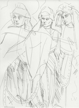 Rhinemaidens (Norns), 1876 2010 Hartgrundradierung © Elizabeth Peyton, 2010 Courtesy neugerriemschneider, Berlin