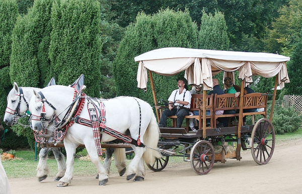 Percheron-Schimmel „Saturn“ und „Sultan“ von Holger Bauer als Kutsch- und später als Rückepferde im Einsatz.