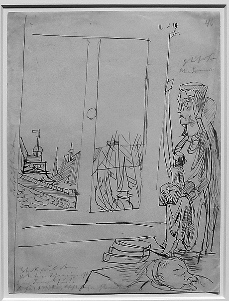 r.: Entwurf zu Die Nacht, 1912, Feder in Schwarzbraun