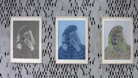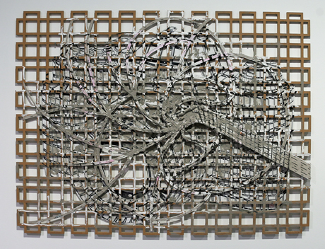 komplexe Netzstrukturen, die aus der Wiederholung von Einzelmotiven entstehen und das Verhältnis zwischen Individuum und Masse reflektieren.